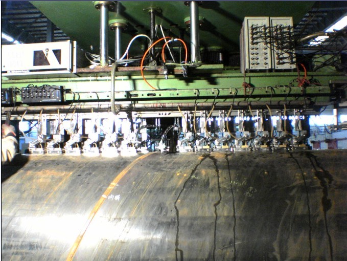 直縫鋼管探傷系統(tǒng)采用局部液浸自動(dòng)探傷,能實(shí)現(xiàn)在鋼管兩個(gè)相反方向上進(jìn)行無損檢測,由于采用液浸探傷使超聲波發(fā)射與接收穩(wěn)定,提高了超聲波探傷可靠性。