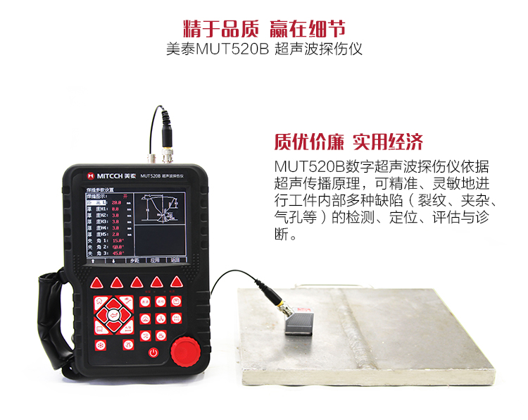 MUT520B是一款便攜式、全數(shù)字式超聲波探傷儀,能夠快速便捷、無損傷、準(zhǔn)確地進(jìn)行工件內(nèi)部多種缺陷(裂紋、夾雜、氣孔等)的檢測、定位、評估和診斷。既可以用于實(shí)驗(yàn)室,也可以用于工程現(xiàn)場。 0-6000mm量程可滿足制造業(yè)、鋼鐵冶金業(yè)、金屬加工業(yè)、化工業(yè)等常規(guī)的缺陷需求,低功耗設(shè)計(jì)配備大容量高性能離子電池模塊可超長待機(jī)數(shù)月以上;