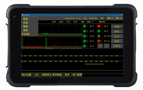 GT-20型鋼軌超聲探傷儀儀器采用超聲主機(jī)+操作終端模式并通過無線WIFI連接,在提高客戶操作體驗(yàn)同時(shí),擴(kuò)充儀器的互聯(lián)網(wǎng)+功能,可實(shí)現(xiàn)人機(jī)檢測分離、數(shù)據(jù)在線、離線實(shí)時(shí)存儲(chǔ)、GPS定位、數(shù)據(jù)云存儲(chǔ)等多種功能。并可以按照客戶自己需要,定制屬于自己的超聲操作終端。