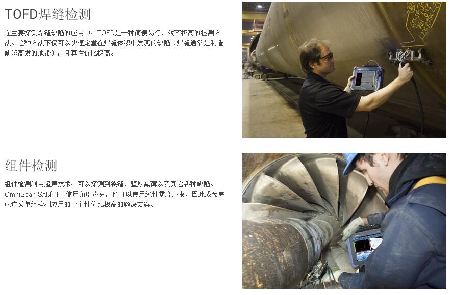 輕便的單組Omniscan SX儀器裝有一個(gè)方便用戶閱讀的8.4英寸(21.3厘米)觸摸屏,可提供高的檢測(cè)解決方案。Omniscan SX儀器有兩個(gè)型號(hào):SX PA和SX UT。SX PA是一款16:64PR 儀器,與僅利用UT技術(shù)的SX UT一樣,也配備了一個(gè)常規(guī)UT通道,用于脈沖回波(P/E)、一發(fā)一收(P-C)或衍射時(shí)差(TOFD)檢測(cè)。