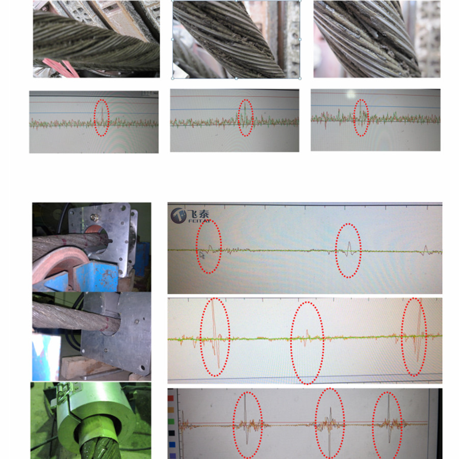 1、能在線(xiàn)檢測(cè)鋼絲繩內(nèi)外部斷絲、磨損、銹蝕、變形、松股、跳絲等各種缺陷功能。